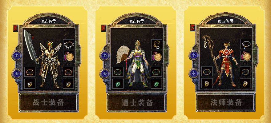 本服装备实行分散、分怪、爆出,各地图都有几率爆出属于各职业的装备。