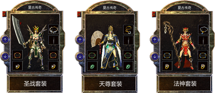 最高等级首饰开放到赤月套:战士的圣战系列、道士的天尊系列、法师的法神系列,战法道三职业只设常规技能。