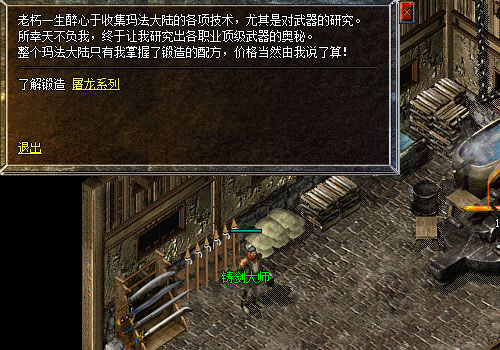 如果你能收集到所需材料就可以到土城铁匠铺二楼“铸剑大师”处锻造相应的顶级武器。