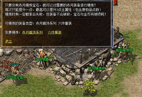 玩家可以通过NPC精炼祖玛及赤月级别的头盔/衣服/各类首饰装备。