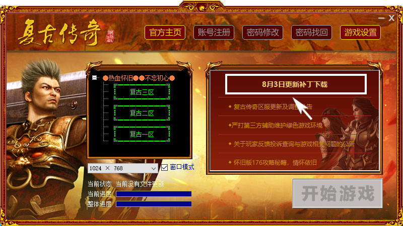 6、即日起调整“复古永恒”为“复古一区”、“热血情怀”为“复古二区”、“热血春秋”为“复古三区”